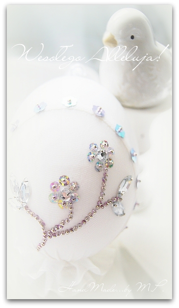 Kiedyś tam miałam czas bawić się w robienie ozdób świątecznych i kilka z nich pokażę,może komuś coś wpadnie w oko.Wykonanie jak zawsze proste banalnie,wystarczy jajo ze styropianu,kawałek cienkiego materiału,jakieś cekiny,koraliki i inne pierdółki i dobre chęci.